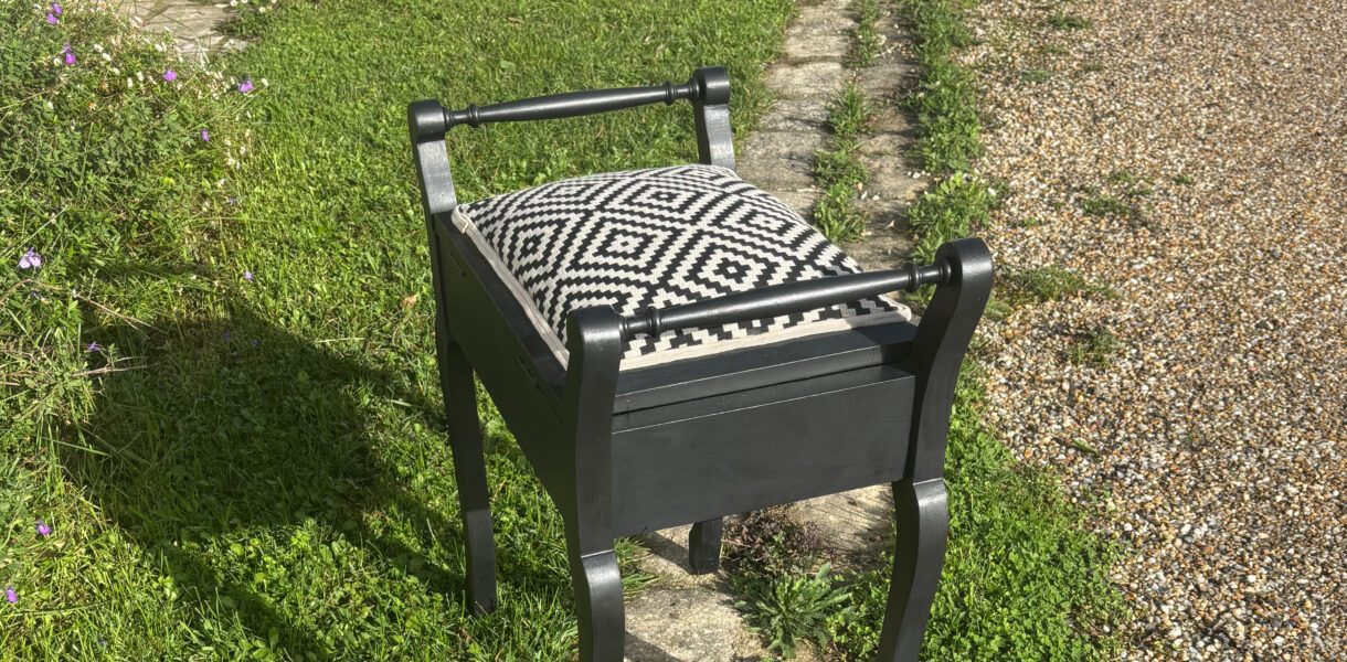 Tabouret-Coffre vintage – Bois et tissu Noir