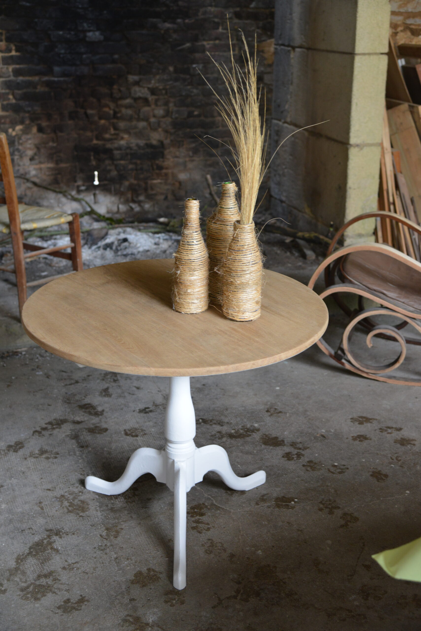 Simplicité et charme naturel pour cette table ronde en bois brut.