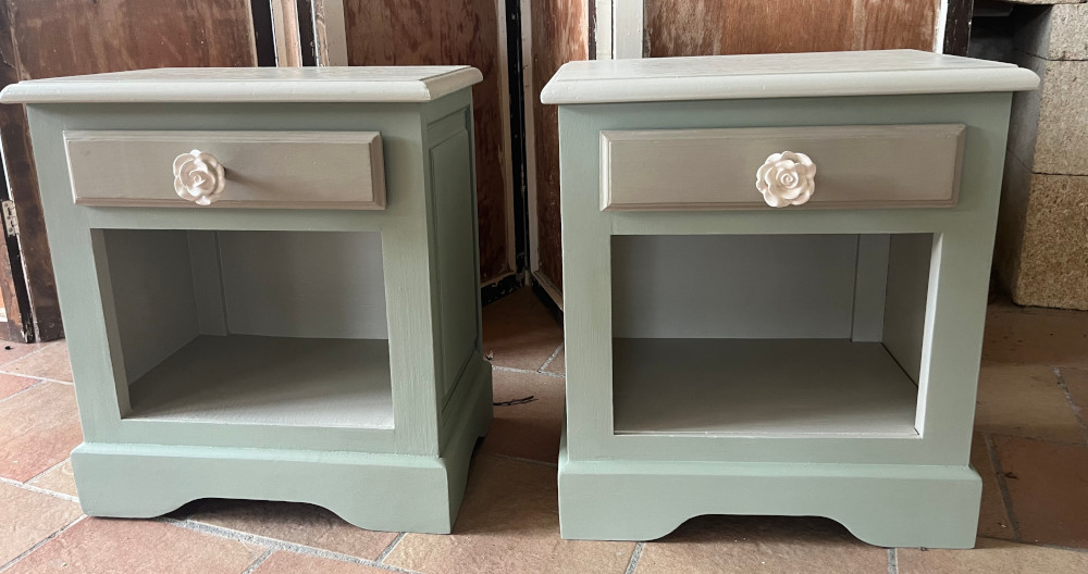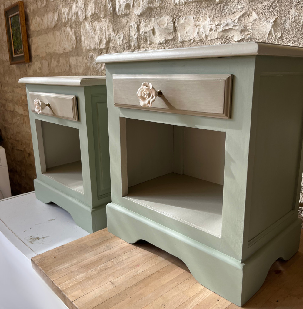Ces 2 adorables tables de nuit sont très pratiques avec leur tiroir et leur casier