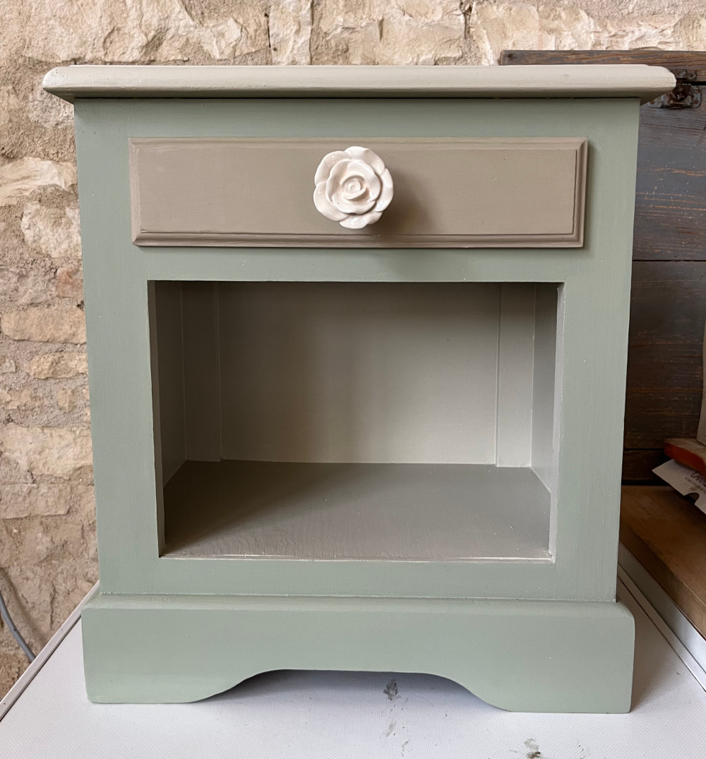 En bois de pin, elles ont été peintes de douces couleur beige et vert amande afin d’accompagner vos nuits tranquilles.