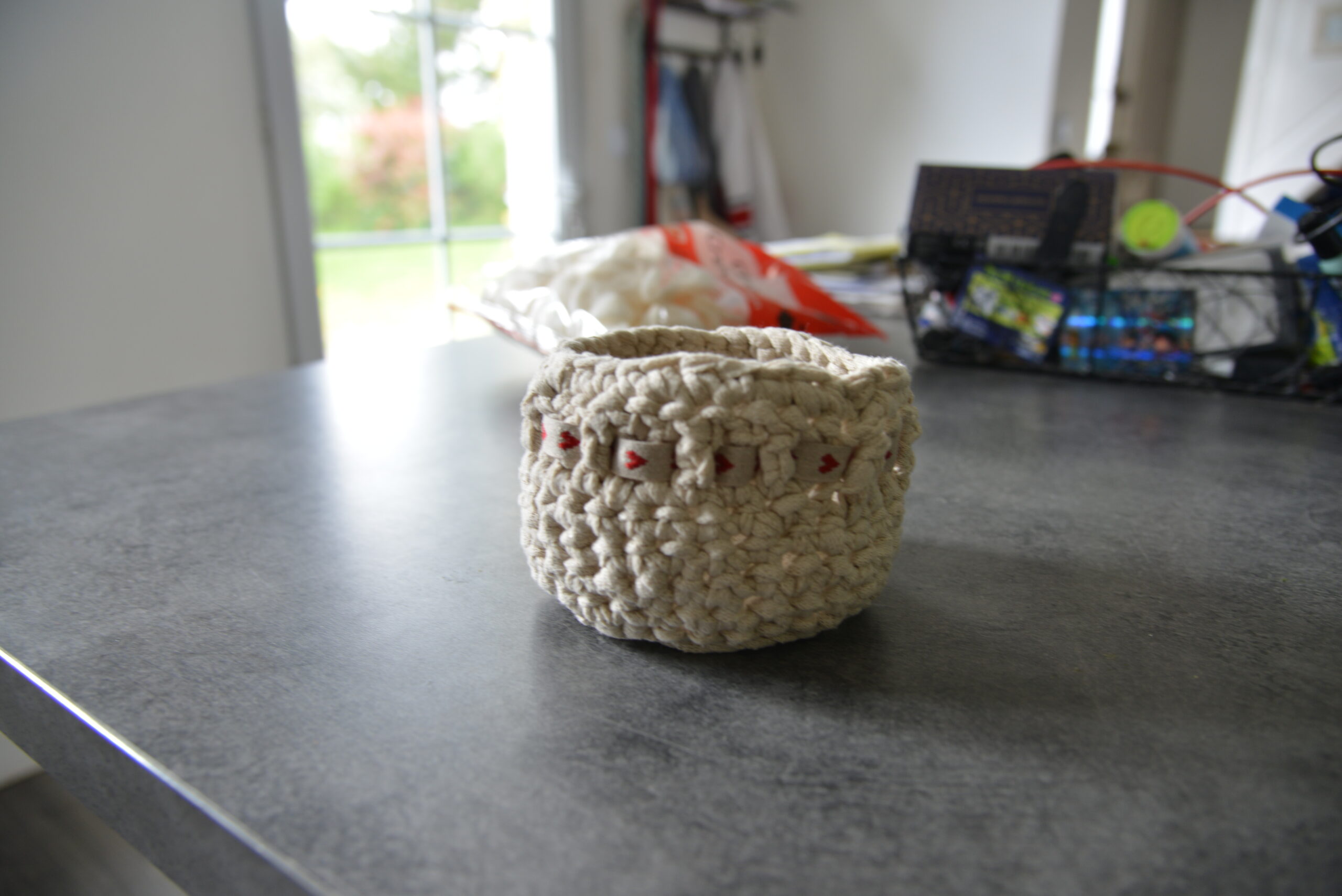 Fabriqué main avec son liseré de cœurs rouges, il aura l’usage que vous lui choisirez : à poser dans la salle de bain pour le coton, ou son maquillage, dans l’entrée il pourra servir de vide poche, ou dans le salon, il pourra accueillir un verre avec une bougie…